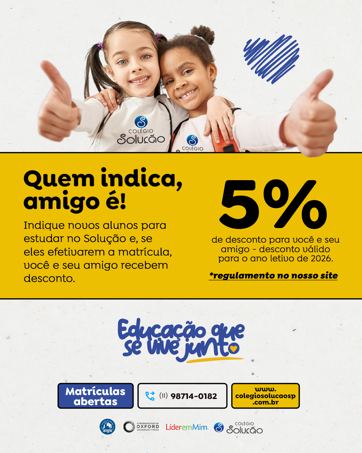 1.1. “QUEM INDICA, AMIGO É” é uma campanha promocional válida para os alunos regularmente matriculados no Colégio Solução no ano letivo de 2026;